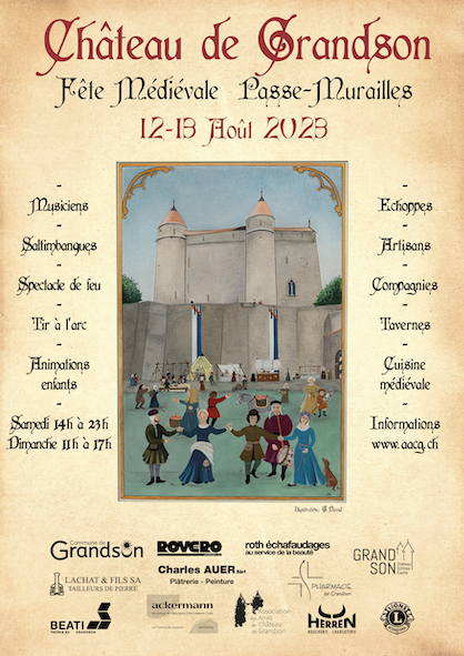 Si, comme nous, vous souhaitez participer au rayonnement du Château de Grandson et le voir vivant et animé, n’hésitez pas : soutenez notre action et rejoignez-nous en devenant « Ami du Château de Grandson ». Vous profiterez en plus de nombreux avantages, dont l'entrée gratuite toute l'année au Château, et surtout à la Fête Médiévale ! Pour en savoir davantage, visitez notre page Devenir membre